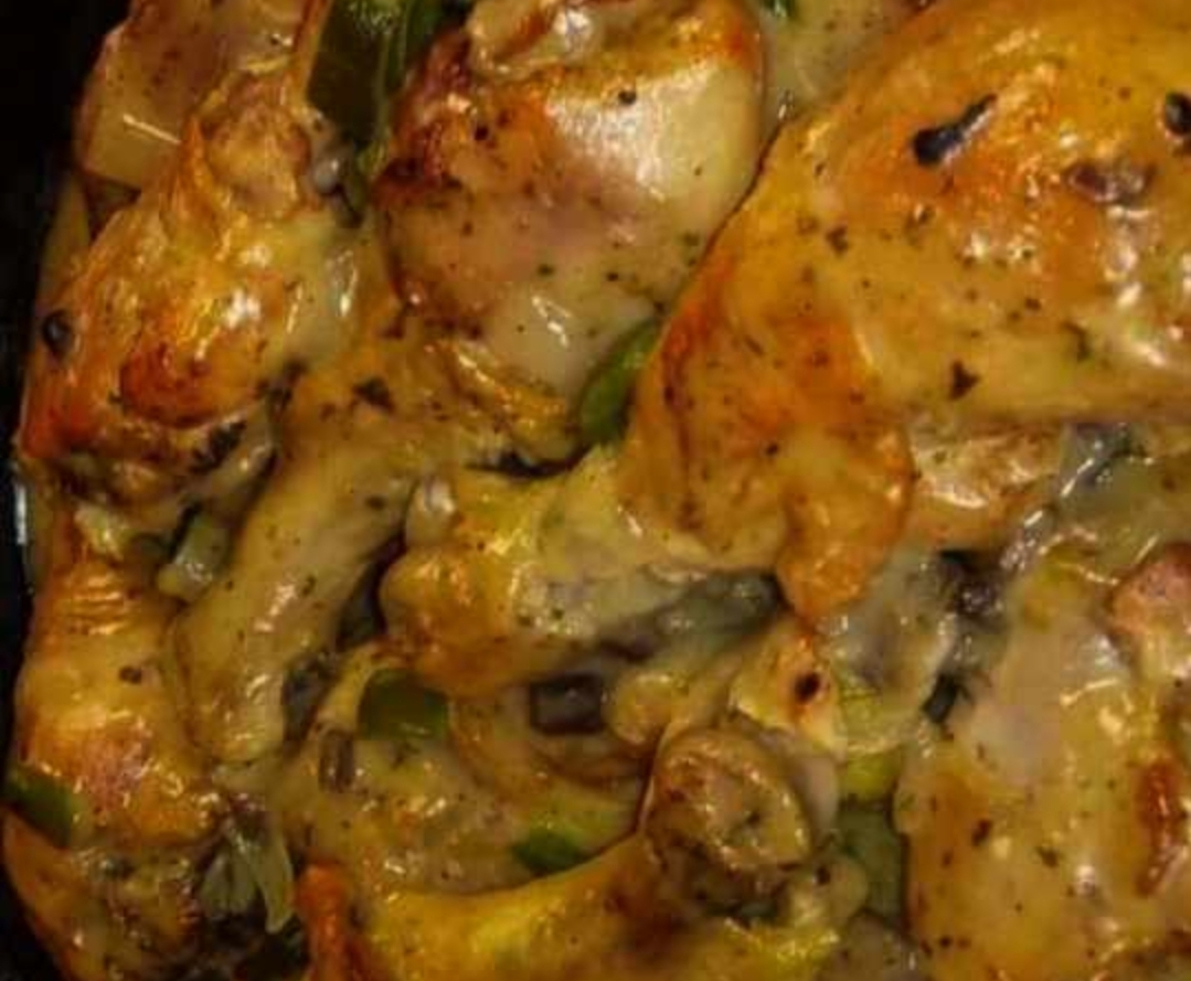 In a small bowl, combine the flour, 1/2 teaspoon salt, 1/4 teaspoon ground black pepper. On a large plate, dredge chicken legs in this seasoned flour mixtureHeat 2 tablespoons of olive oil in a large skillet on medium-high heat.Add chicken legs skin side down and brown for about 4 minutes until the skin turns a nice golden color.Flip chicken legs over to the other side and brown the other side for about 3 minutes.Remove browned chicken legs and set them aside. Also, remove those parts of olive oil that got too dark from browning the chicken with flour mixture.To the same, now empty skillet, add mushrooms (sliced in half) and minced garlic, add an extra tablespoon of olive oil (if needed) and saute them together on medium heat for 2 minutes.Add chicken stock to the skillet, scraping up the browned bits at the bottom of the pan. Add 1/4 teaspoon of salt and stir.Place chicken legs back in the pan.Bring the chicken stock to boil, cover, and reduce heat to simmer on low-medium.Simmer chicken legs for 25-30 minutes, until the chicken is completely cooked through and the juices run clear when chicken is cut in the middle.Remove the cooked chicken legs to a plate and keep warm.Turn the heat under the skillet to medium-high, and simmer the mushroom sauce for about 4 minutes until it is reduced by about a third.Stir in the 1/2 cup heavy cream into the mushroom sauce and simmer for another 2 minutes on low-medium heat, constantly stirring and scraping from the bottom of the skillet, until the sauce gets thicker.Add chicken legs back to the skillet to warm them up.