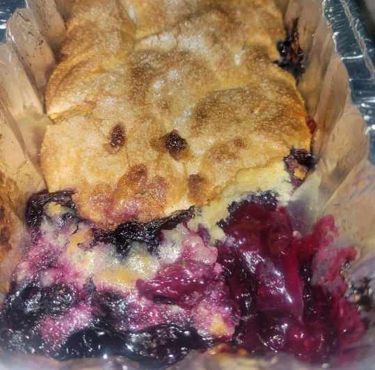 This blackberry dessert has a soft and airy cake-like topping instead of the usual biscuit-style one. My partner said that this blackberry dessert was the most delicious she has ever tasted. Serve hot with thick or whipped cream.