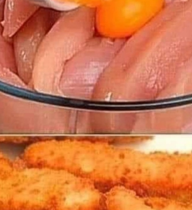 Ingredients:3 eggs2 chicken fillets2 cloves of garlic2 tablespoons of spices2 tablespoons of corn starchOilSalad1 tablespoon of saltInstructions:The egg yolk from the egg white.Cut the chicken into strips. Mix with egg yolk, garlic, spices, salt and starch.Beat the egg whites in a bowl. Pour the oil into the pan.Dip the chicken in the egg whites.Grill. Decorate with lettuce and cherry tomatoesEnjoy!