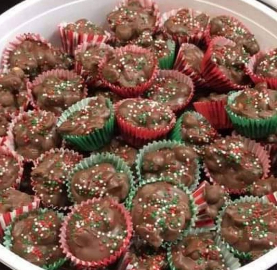 This stuff is the easiest Christmas candy ever. EVER. You literally throw all the ingredients in a crockpot, wait a bit, stir, then drop blobs out onto wax paper to cool. Boom. Done. For the super fancy, you can drop the candy blobs into mini cupcake liners. Ooooooh, so very Martha, Betty, Paula, Ina of you!