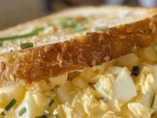 Step 3: Scoop a generous amount of egg salad onto two slices of toasted bread. Top with the remaining bread slices to complete the sandwich.