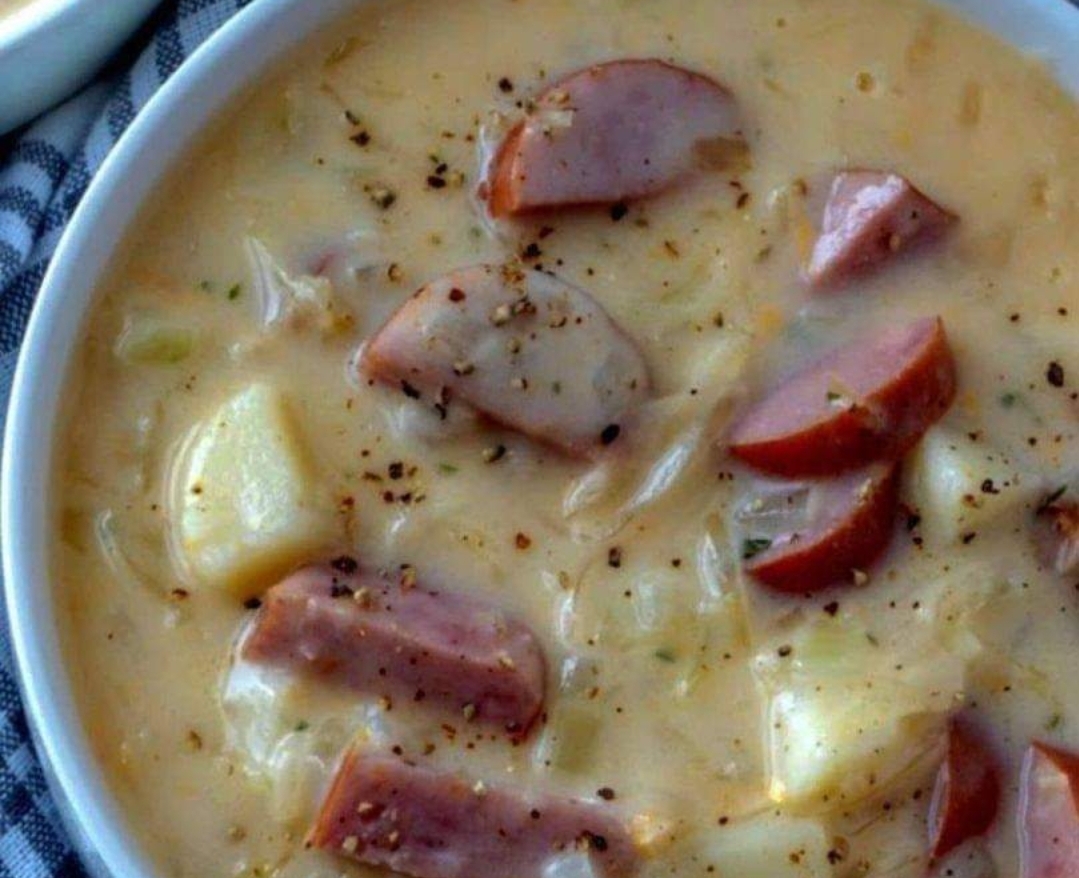 FIRST STEP:In a large Dutch oven or Soup Kettle heat the Olive Oil over medium high heatAdd in the sliced sausage and cook for 5 to 6 minutesRemove the sausage from the Dutch oven and set to the signSECOND STEP:In the same pot add in the onion garlic carrots and celery and cook for 2 minutesAdd the chicken stock and add in the potatoesBring to a boil and then decrease the heat to low medium cover and cook for 15 minutesTHIRD STEP:Add the Kielbasa back into the pot add the milk Parmesan Cheese and Cheddar Cheese. Season with salt and pepperStir well and cook for another 10 minutes over the low medium heat until the cheese has meltedRemove from the heat and garnish with Chopped ParsleyServe immediately