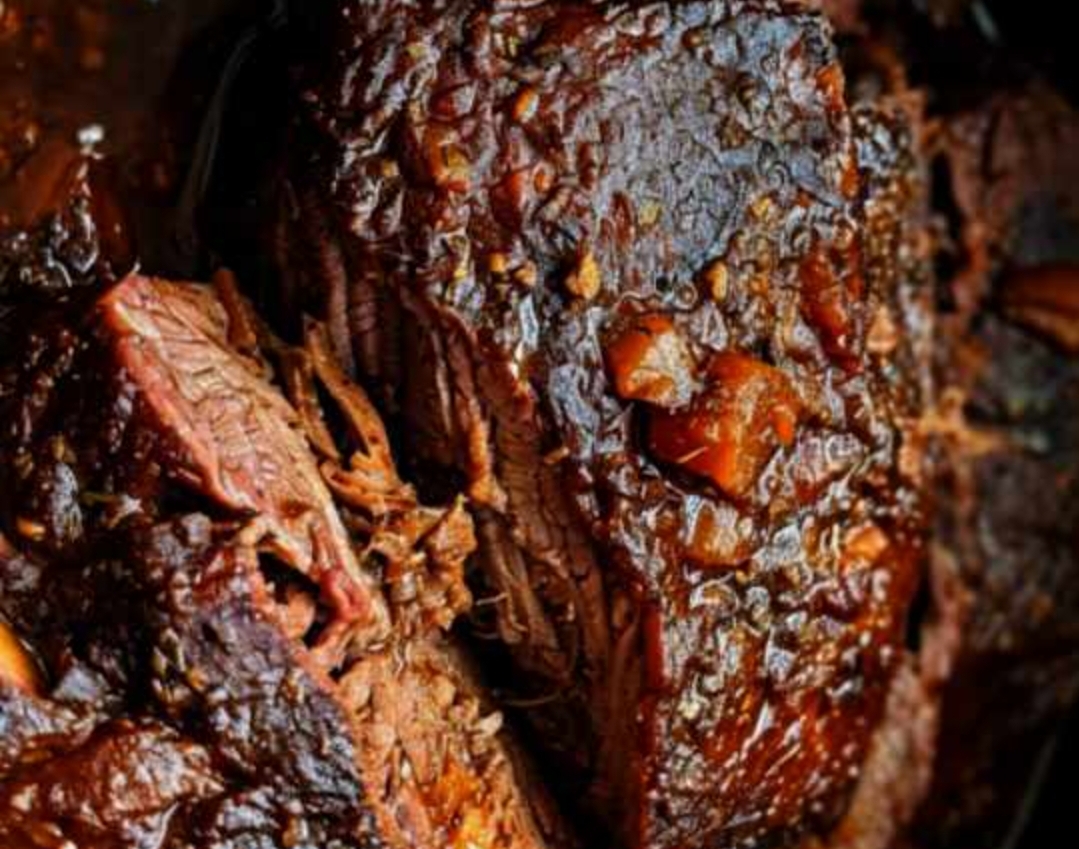 - Cover and cook on low for 8 to 10 hours, until the brisket is fork-tender.
