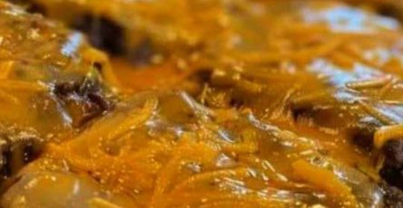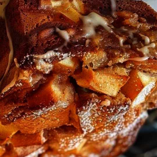 Fill the ready loaf pan half full of batter. Over the batter, toss half of the apple mixture; then, top with half of the brown sugar-cinnamon mixture.