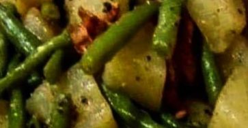 Ingredients: °1 ½ lbs green beans (or 2 frozen 12 oz packages) °4 bacon strips (keep drippings) °6 oz cream…