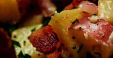 Ingredients: – 2 pounds of red potatoes, cubed– 1 medium yellow onion, diced– 3 stripes of bacon, chopped– 1 cup…