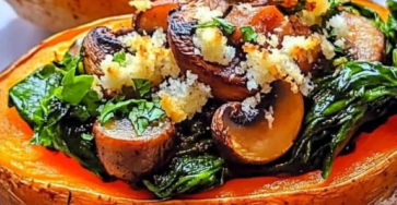 STUFFED SWEET POTATOES WITH SPINACH, MUSHROOM, AND FETA