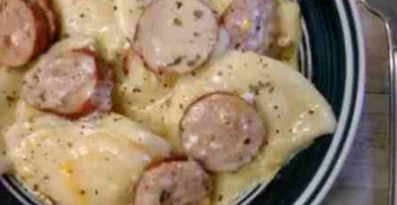 Heat olive oil in skillet or Dutch oven over medium-high heat. Adding half of the onions to pot and fry on both sides. Transfering onions to a plate.