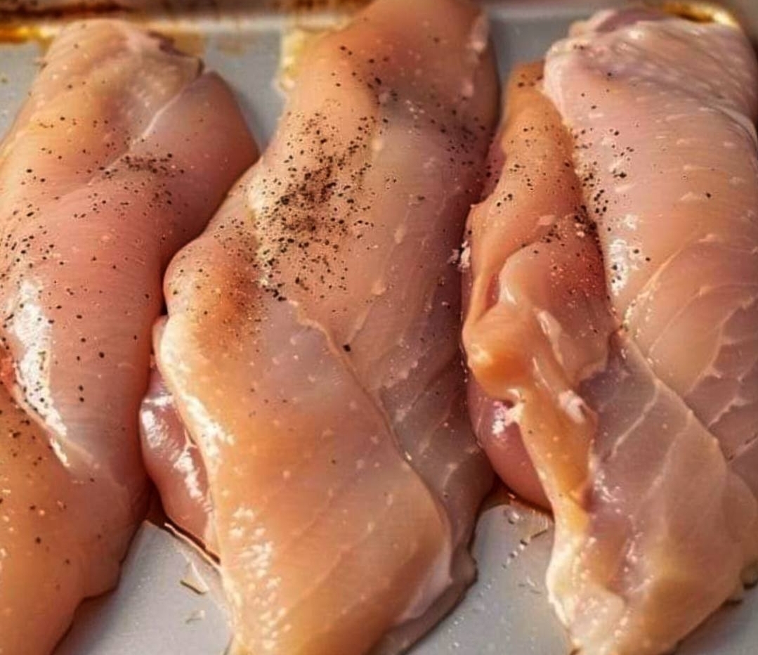 Season both sides of the chicken breasts with salt and pepper to taste. Arrange them evenly in the baking dish on top of the mozzarella and basil.