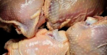 Lay the chopped chicken snugly at the base of a 4-quart slow cooker.
