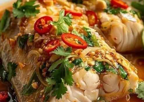 – Spoon the spicy lime and garlic sauce over the steamed fish.