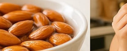 - Take 5-10 raw almonds and soak them in water overnight.